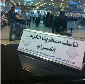 وفي هذا الإطار اعلنت مؤسسة الخطوط الجوية الكويتية اليوم الغاء جميع رحلاتها منذ الصباح الباكر ويستمر الالغاء حتى الساعة الخامسة مساء نظرا لاستمرار حالة الاضراب لعامليها والشركات التابعة لها.