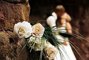 أ – في قاعة صغيرة مليئة بالورود والشموع