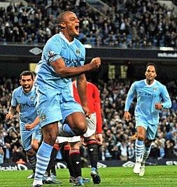 إنتزع مانشستر سيتي الصدارة من جاره اللدود مانشستر يونايتد حامل اللقب عندما جدد فوزه عليه 0/1 مساء الإثنين في دربي مانشستر الذي أقين على ملعب 'الإتحاد' وأمام 47259 متفرجا في ختام الجولة السادسة والثلاثين من الدوري الإنجليزي الممتاز لكرة القدم.