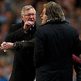 ظهر السير أليكس فيرغسون المدير الفني لمانشستر يونايتد في غاية الإحباط بعد هزيمة فريقه على ملعب مانشستر سيتي 0/1 مساء الإثنين وفقدانه صدارة الدوري الإنجليزي الممتاز لكرة القدم.
