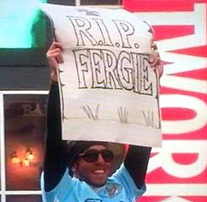 وكان الأرجنتيني تيفيز، مهاجم يونايتد السابق، رفع لافتة اعطيت له من قبل أحد الجماهير كتب عليها (RIP Fergie) أي 'أرقد بسلام يا فيرغي'، خلال مراسم احتفال سيتي باللقب والجولة الاحتفالية التي أقيمت في شوارع المدينة.