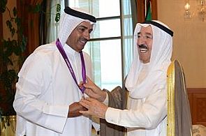 فيما يلي بعض الصور يظهر فيها البطل الديحاني يقلّد كل من سمو أمير البلاد ورئيس الوزراء ميداليته الأولمبية