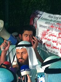 تداعى عدد من المواطنين والنواب والشخصيات السياسية عبر مواقع التواصل الاجتماعي للخروج أمس الساعة التاسعة في اعتصام أمام سفارة بورما في البلاد للمطالبة بطرد السفير البورمي وذلك احتجاجاً على عمليات القتل والاغتصاب التي بحق المسلمين هناك.