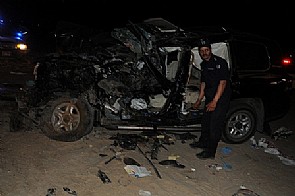 أن حادث مروع وقع بين مركبتين وانقلاب المركبة الاولى وهي نوع تنكر والمركبه الثانية لاندكروزر به ٤ أشخاص جاء على وفاة مواطنين وإصابة 4 أشخاص آخرين مجهولين الهوية، وهما في حالة حرجة، وتم نقلهم بالإسعاف وجاري عمل اللازم .