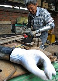 نجح مزارع صيني كان قد فقد ذراعيه اثر انفجار قنبلة في صنع أطراف اصطناعية بعد عجزه عن شراءها من المستشفى.