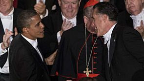 ففي الحفل الذي نظمته الأبراشية الكاثوليكية بنيويورك، قال أوباما إن أداءه في المناظرة الأولى، والتي يرى كثيرون أنه خسرها، كان مجرد 'إغفاءة طويلة' يتحضر فيها للمناظرة الثانية وسخر رومني من ثروته الشخصية.