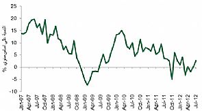 ونما الناتج الصناعي بصورة جيدة عند 2.7% على أساس سنوي في أغسطس 2012، وهو معدل أكثر من النمو المتوقع عند 1.1%.وكانت البيانات بمثابة أكبر دليل على أن المشاكل التي يعاني منها ثالث أكبر اقتصاد في آسيا لا يمكن إنهائها أوالتغلب عليها بسهوله. ونما إجمالي الناتج المحلي بنسبة 5.5٪ أو أقل في الربعين الماضيين، وهي نسبة أقل بكثير من النمو بنسبة 7٪ - 8٪ التي شهدتها الفترة السابقة.
