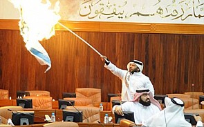 عربي و دولينائب بحريني يحرق علم اسرائيل داخل قاعة مجلس النواب