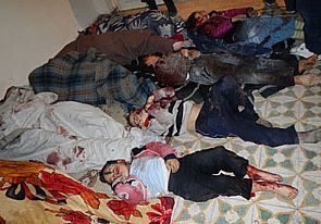 وفي أحدث أدلة على الفظائع التي ترتكب بث معارضون سوريون شريط فيديو يبدو انه يظهر مقاتلين مؤيدين للرئيس الاسد يطعنون رجلين حتى الموت ويرجمونهما بكتل اسمنتية في عملية إعدام بدون محاكمة استغرقت عدة دقائق.