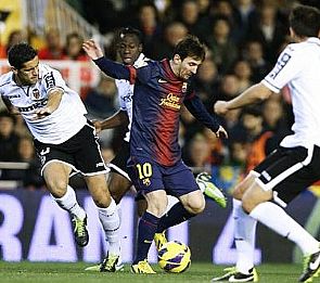 أنقذ الدولي الأجنتيني ليونيل ميسي فريقه برشلونة من الخسارة أمام مضيفه فالنسيا وأدرك له التعادل 1/1 مساء اليوم الأحد على ملعب المستايا في قمة الجولة الثانية والعشرين من الدوري الإسباني الممتاز لكرة القدم.