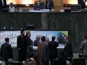 وفي هذه اللحظة ضجت قاعة البرلمان بعبارات السخرية، ثم طلب أحمدي نجاد الكلمة مرة أخرى، وهو الطلب الذي رفضه لاريجاني، فغادر أحمدي نجاد القاعة، وخسر في التصويت الذي أجري على عزل وزير العمل.