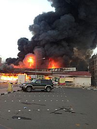 حيث تشير المعلومات الأولية إلى أن سبب الحريق يعود إلى احتراق محول كهربائي بجانب السوق المركزي القديم.