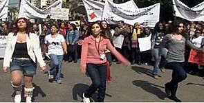 احتشد جمع من السيدات اللبنانيات أمام منزل رئيس البرلمان نبيه بري، ورقصن لإيصال رسالتهن بضرورة إقرار قانون يحمي النساء من العنف الأسري.