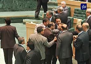 وحاول النائب العدوان اخراج مسدس يحمله خلف ظهره، الا ان النواب حالوا دون ذلك، وعندها قرر رئيس المجلس خليل عطية رفع الجلسة.