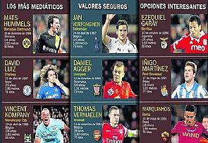 وضمت القائمة التي كشفت عنها الصحيفة الإسبانية لاعبين عدة من الدوري الإنجليزي منهم: فيرتونغين - توتنهام، أغير - ليفربول، 'فيرمايلين - أرسنال، فضلا عن مدافع فريق روما الإيطالي الشاب البرازيلي ماركوس ماركينيوس ومدافع ريال سوسيداد الإسباني إينيجو مارتينيث.