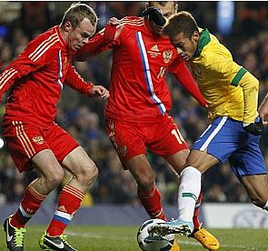 وتكررت المحاولات الهجومية من جانب البرازيل، ومرر مارسيلو كرة متقنة الى نيمار الذي كان انانيا فسدد متسرعا بدل التمرير الى فريد غير المراقب لتذهب كرته بعيدا في الدقيقة 27، وتباطأ نيمار واحتار بين التسديد والتمرير هذه المرة فتدخل الفاع الروسي وابعد الخطر في الدقيقة 33، واصاب فيكتور فايزولين الشبكة البرازيلية من الخارج في الدقيقة 41) في اول محاولة بعد غياب كلي استمر 21 دقيقة.