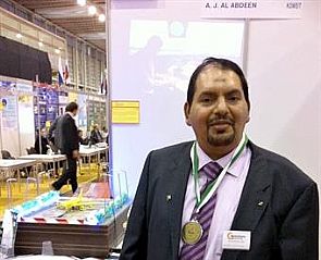 وسلم سفير المملكة العربية السعودية لدى سويسرا حازم كركتلي المخترع عادل العابدين الميدالية الذهبية مهنئا اياه والكويت بهذه الميدالية الذهبية التي تمنحها الجامعة للاختراعات المتميزة.