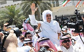 أوقفت محكمة الاستئناف أمس حكم محكمة الجنايات القاضي بحبس النائب السابق مسلم البراك لمدة خمس سنوات في الدعوى المقامة ضده من وزارة الداخلية على خلفية حديثه في ندوة «كفى عبثا» ، حيث أخلت سبيله بكفالة مالية قدرها 5000 دينار مع منعه من السفر، وأرجأت محاكمته إلى يوم 13 من شهر مايو المقبل.ووسط إجراءات أمنية مشددة وحضور منظمات إنسانية محلية ودولية بينها المنظمة الدولية لحقوق الإنسان إلى جانب تواجد شعبي كبير يتقدمهم نواب سابقون، عقدت الدائرة الجزائية الرابعة بمحكمة الاستئناف برئاسة المستشار أنور العنزي، أمس أولى جلساتها لنظر استئناف البراك لحكم حبسه، وقد بدأت الجلسة بدخول البراك دون مؤيديه حيث قام رجال الأمن باقتياده وحجزه داخل القاعة باعتباره كان متهما مطلوبا، وقد تم بعدها إغلاق القاعة وإخلاء الدور السادس الذي يشهد المحاكمة بقصر العدل من المتواجدين باستثناء المحامين الذين تحفظوا على عدم السماح بدخول المتواجدين لقاعة المحكمة باعتبار أن قانون المحاكمات ينص على أن المحاكمات علنية.وبدأت الجلسة بسؤال هيئة المحكمة للبراك عن صحة الاتهامات المسندة إليه، فرد قائلا أنها اتهامات غير صحيحة، مضيفا أن وزارة الداخلية اقتحت ديوانه وهي تعلم بأنه غير موجود فيه ولما يعلن لهم أنه موجود في منزله لا يتجهون إليه ويلقون القبض عليه.بعدها تحدثت هيئة الدفاع للمحكمة حيث طالبت بوقف نفاذ حكم محكمة أول درجة القاضي بحبس موكلها لمدة خمس سنوات وإخلاء سبيله لحين البت باستئنافه، وطالبت أيضا بإرجاء الدعوى للاطلاع وتحديد طلباتها في الجلسة المقبلة.وحضر عن البراك عدد من المحامين منهم النائب السابق وليد الجري وثامر الجدعي ودوخي الحصبان وعبدالرحمن البراك ومحمد الجاسم وآخرون، حيث أوضحوا للمحكمة أن حكم محكمة أول درجة يعد باطلا ومن غير العدالة أن يحبس موكلهم تنفيذا لحكم باطل وأن هناك خطرا كبيرا سيحدث له لو تم حبسه معتبرين أن وزارة الداخلية حينما اقتحمت ديوانه كأنها تريد قتله لا القبض عليه.وكانت محكمة الجنايات قد أصدرت يوم الإثنين الماضي حكما بحبس البراك لمدة خمس سنوات مع الشغلوالنفاذ عن تهمة الإساءة لمسند الإمارة على خلفية إلقائه خطابا موجها إلى سمو الأمير في ساحة الإرادة، ولم يلق هذا الحكم لدى المتهم ومحاميه حيث طعنوا فيه أمام محكمة الاستئناف.ووسط هتافات واهازيج وفرحة عارمة استقبل أمس النائب السابق مسلم البراك في ديوانه بالاندلس محمولا على الأكتاف من قبل أهله وأصدقائه ومؤيديه، وذلك عقب إيقاف محكمة الاستئناف نفاذ الحكم الصادر ضده بالسجن 5 سنوات، حيث أطلق القاضي سراحة مقابل كفالة «5» الاف دينار ، وحدد جلسة 13 مايو المقبل موعدا للنظر في القضية أمام محكمة الاستئناف.وقال البراك في كلمة له أمس بديوانه عقب الافراج عنه: فرحتنا اليوم منقوصة لأن راشد العنزي وصقر الحشاش وحامد الخالدي وعياد الحربي مازالوا ينتظرون أحكامهم، وهم أفضل منا جميعا لأنهم وضعوا الكويت نصب اعينهم.وزاد: لو سمعت أمامي من قال عن أبناء الشعب الكويتي «هذول قوم مكاري» لوضعت أصابعي في عيونه مضيفا: هؤلاء مخلصون وكلما وفينا لهم أعطونا وفاء وفرغوا أنفسهم وحضروا إلى ديواني لأنهم مؤمنون بالحراك الشبابي.وأضاف البراك مخاطبا الجموع في الديوان: الكويت بخير وبإذن الله ستكون بخير وانتم بخير ونحن اليوم في مثل هذه الاجواء نعرف ان الحراك ممكن ان يمرض ولكن لايموت، ويحتاج إلى اوكسجين وأنتم قدمتم الاكسجين ، ومطالبنا واضحه ان كنا داخل السجن او خارجه. «الكرامة للأمة» ولن نقبل ان نكون لقمة سائغة لبعض المتنفذين والكويت لن تسرق.وتابع ما فعلته القوات الخاصة في مسيرة الاندلس والعنف الذي صاحبها ماهو الا بلطجة الاقتحام ، ولن يستطيع احد ان يخضعنا، لافتا إلى ان المحامين بإذن الله الفترة القادمة يستعدون لكل تفاصيل القضية، مؤكدا: قضيتي انتم وعهدا علي لن اخذلكم وهذا الوضع يجب ان يستثمر ببشكل جيد في إحياء الحراك وبين: ان مطالبنا واضحة غير مستحيلة وهي حكومة من