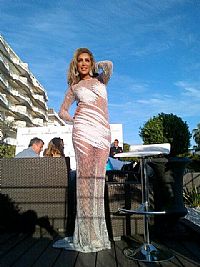 نشرت الفنانة اللبنانية مايا دياب صورها في مدينة كان الفرنسية لحضور مهرجان كان السينمائي 2013. مايا اختارت بفستاناً باللون الأبيض شفاف جريء جداً من تصميم صديقها المصمم اللبناني نيكولا جبران.