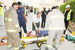 نفذت الإدارة العامة للإطفاء تمرين عملي على حريق وإخلاء وهمي في فندق هوليدي إن بمنطقه السالميه صباح اليوم بالإشتراك مع الدفاع المدني والطوارئ الطبية .