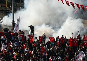 وتجمع الاف يطالبون باستقالة الحكومة في متنزه في وسط انقرة حيث اطقت الشرطة في وقت سابق الغاز المسيل للدموع لتفريق عشرات من انصار المعارضة الذين حاولوا الوصول الى مقر حزب العدالة والتنمية. وأظهرت صور على وسائل التواصل الاجتماعي تجمع محتجين ايضا في موقعين في ازمير.