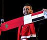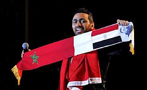 حاملاً علم المغرب ووجه كلمة شكر لجمهوره في مختلف أرجاء الوطن العربي.