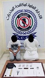 وقد وردت معلومات عن قيـام احدهما (غير محدد الجنسية) بالاتجار في المـواد المخــدرة وعلى الفور تم التحري عنه وجمع المعلومات والاستدلالات التي أكدت ضلوعه في الاتجار بالمواد المخدرة وبعد اتخاذ الإجراء القانوني تم مداهمة منزله والقبض عليه وعثر بحوزتــه على ربع كيلــو حشيش ، كما اعتــرف أن مصدرهــا أحد الخليجيين وتوجهـت القــوة إلى عنــوان سكنــه ومداهمته وعثر بحوزته على ربع كيلو حشيش.