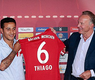 أعلن نادي بايرن ميونيخ الألماني بطل الدوري والكأس المحليين ودوري ابطال اوروبا في الموسم الماضي انه ضم لاعب وسط برشلونة الاسباني تياجو الكانتارا مقابل 25 مليون يورو (32.6 مليون دولار).