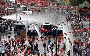 استخدمت الشرطة التركية خراطيم المياه والغاز المسيل للدموع في وقت متأخر من ليلة الخميس لتفريق مظاهرة مناوئة للحكومة في اسطنبول. وكان المتظاهرون يحتجون على مقتل متظاهر في وقت سابق من الاسبوع الجاري.
