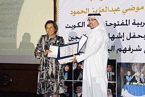 دشنت مديرة الجامعة العربية المفتوحة الاستاذه الدكتورة موضي الحمود نادي خرجي فرع الجامعة العربية المفتوجه بدولة الكويت بحضور مدير الفرع الدكتور نايف المطيري ولفبف من اعضاء هيئة تدريس الجامعة والخريجين حيث اشتمل حفل التدشين على كلمات لمديرة الجامعة ومدير الفرع والخريجين حيث استهلت مدير الجامعة العربية المفتوحة الاستاذة الدكتورة موضي الحمود حفل بكلمة قالت فيها يسرني أن أنقل لكم تحيات صاحب السمو الملكي الأمير طلال بن عبد العزيز رئيس مجلس الأمناء الذي يبارك لكم اشهار نادي الخريجين، وأنا على ثقة بأن فرحة سموه لا تقل عن فرحتكم وهو يرى خريجي الجامعة العربية المفتوحة يجتمعون مرة أخرى في هذا الكيان الجديد، فخريجونا دائماً لهم معزة ومكانة خاصة في قلوبنا جميعا بصفة عامة وقلب رئيس مجلس الأمناء بصفحة خاصة، ويعدكم كما طلبتم بزيارة خاصة في المستقبل ليشارككم الرؤى والتطلعات التي تحملونها معكم وعبر ناديكم لتطوير مجتمعاتكم.