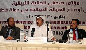 وحضر المؤتمر الصحافي ايضا منسق الجالية النيبالية للشرق الاوسط ناراندرا بهادور الذي اورد ارقاما بشان وفيات النيباليين في قطر، بالاضافة الى المستشار القانوني للجالية النيبالية في قطر.