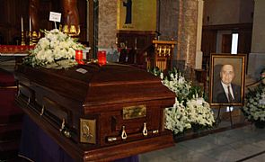 ودّع لبنان الفنان الكبير وديع الصافي في مأتم مهيب أقيم في كاتدرائية القديس جرجس - وسط بيروت. ترأس البطريرك الماروني الكاردينال مار بشارة بطرس الراعي مراسم وصلاة الجناز، في حضور ممثلين عن رئيس الجمهورية ورئيس مجلس النواب نبيه بري ورئيس حكومة تصريف الأعمال نجيب ميقاتي والرئيس المكلف تمام سلام وحشد من الوزراء والنواب والسياسيين والعسكريين والقضاة والفنانين والإعلاميين وأسرة الراحل ومحبيه. ومنحه وزير الثقافة غابي ليون ممثلاً رئيس الجمهورية، وساماً مذهباً تقديراً لعطاءاته. وبعد إنتهاء مراسم وصلاة الجناز إنطلق الموكب إلى بلدة نيحا - الشوف مسقط رأسه، حيث دفن جثمان الراحل في مدافن العائلة.