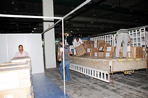 وقد بدأت ادارة المعرض في استقبال شحنات الكتب القادمة عن طريق البر من مختلف الدول العربية وتم توزيع الكتب على أجنحة الناشرين وفق الخرائط التي قامت بإعدادها وقد تم وضع جدول زمني لترتيب وصول شحنات الكتب بالاضافة الى الكتب التي وصلت عن طريق المطار حتى يتم إيصال الكتب الى الصالات حيث تم تخصيص الصالة رقم 5 لدور النشر المحلية والخليجية والصالة رقم 6 لدور النشر العربية ودور النشر الحكومية والنشر الالكتروني، فيما خصصت الصالة رقم 7 لأجنحة الأطفال