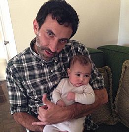 في الصورة الطفلة إبنة كيم كارديشيان وكانيي ويست يحضنها المصمّم الايطالي 'ريكاردو تيسي ' صديق كيم وكانيي.