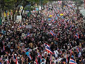 والمظاهرات هي أحدث موجة من الاضطرابات في نحو عشر سنوات من النزاع بين القوى السياسية التي تتخذ من بانكوك مقرا لها ومن يؤيدون تاكسين وهو قطب اتصالات سابق فاز بدعم كبير في الريف بسياساته المؤيدة للفقراء.