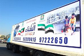 انطلقت أمس (13) شاحنة محملة بالمؤن الغذائية والأغطية والألبسة جمعتها جمعية إحياء التراث الإسلامي من أهل الخير في الكويت متجهة الى تركيا ولبنان ، ومن ثم الى الأراضي السورية لإغاثة المتضررين والمنكوبين من تلك الأحداث الأليمة التي يشهدها الشعب السوري .