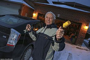 ومدّ أوسيملاك، سلكاً من قبو بيته إلى سيارته الهجينة، واستعملها من أجل إدارة جهاز التدفئة، وحين ارتفعت حرارة المنزل استعملها لإشعال النور ومشاهدة التلفزيون.