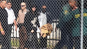 لوح نجم البوب الكندي جاستن بيبر لحشد من معجبيه لدى مغادرته أحد سجون ولاية فلوريدا الأميركية عقب إطلاق سراحه بكفالة بعد إلقاء القبض عليه لاتهامه بالقيادة تحت تأثير المخدرات إلى جانب جنح أخرى.