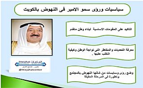 بمناسبة ذكرى تولي سمو أمير البلاد الشيخ صباح الأحمد الجابر الصباح مسند الامارة في التاسع والعشرين من يناير عام 2006 ، وفي محاولة لرصد التصور الأميري في بناء الوطن.. استعرض مركز اتجاهات للدراسات والبحوث الذي يترأسه خالد عبدالرحمن المضاحكة على مدار عدة حلقات مسيرة سموه، وفي أولى حلقاته عن هذا التصور السامي لمقومات انشاء الوطن وتقدمه, يؤكد ان الكويت شغلت مكانة مركزية فى ذهن سمو بتأكيداته المستمرة على انها تستحق التضحية والتعاون على تطويرها لتحقيق النهضة والتنمية المستدامة.
