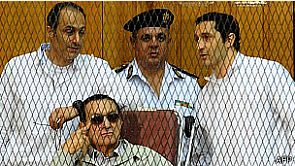 وإلى جانب مبارك ، يمثل نجلاه علاء وجمال، ووزير الداخلية الأسبق حبيب العادلي و6 من كبار مساعدي الوزير، ورجل الاعمال الهارب حسين سالم بتهم المسؤولية عن قتل والتحريض على قتل المتظاهرين.