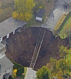 ابتلع هبوط أرضي وقع داخل 'متحف كورفيت الوطني' في لويزفيل بولاية كنتاكي الأمريكية ثماني سيارات فاخرة كانت معروضة. وأبلغ أفراد الأمن إدارة المتحف عندما اكتشفوا حفرة عمقها تسعة أمتار وعرضها 12 مترا في قاعة العرض في وقت مبكر صباح اليوم. وقالت متحدثة باسم المتحف إن أحدا لم يصب في الحادث. واحدى السيارات انتاج 1962 تعود ملكيتها للمتحف، وهناك أيضا سيارتان 'زد أي آر سبايدر' وزد أي أر بلو ديفيل' انتاج 1993 و2009 على التوالي كان المتحف أستعارهما من عملاق صناعة السيارات الامريكية 'جنرال موتورز'.