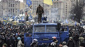 واطيح بالرئيس الاوكراني من منصبه بعد تظاهرات دامية جابت المدن الاوكرانية اعتراضا على سياسة يانوكوفيتش المناهضة لتقوية العلاقات مع الاتحاد الأوروبي ما اسفر عن قتل 70 قتيلا في اشتباكات بين شرطة مكافحة الشغب والمتظاهرين في العاصمة كييف الأسبوع الماضي.