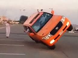 في مشهد غريب نادر أن نراه، قرر عريس أن يذهب إلى القاعة التي ستشهد حفل زواجه بطريقة جديدة ومختلفة حين قام بما يشبه الحركات 'البهلوانية' بسيارته. وبحسب مقطع الفيديو الذي تم نشره على موقع 'الكيك'، يوم الاثنين، قام عريس قطري بقيادة سيارته وهي تسير على جانب واحد باستخدام عجلتين فقط أثناء توجهه إلى القاعة التي تشهد حفل زواجه. الغريب في الأمر أيضاً أن الشاب لم يكن وحيداً داخل السيارة بل كان بصحبة والده وآخرين في مشهد وصفه البعض بالتهور والمخاطرة.