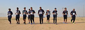 ينهي فريق عدائي رحلة ( Let’s go forward ) في السابعة من مساء غدا الإثنين في مركز حدود النويصيب رحلته الطويلة التي بدأها جريا على الأقدام من مركز حدود العبدلي يوم الأربعاء الماضي ولمسافة 240 كيلومترا بمشاركة 10 عدائين بينهم 3 فتيات وهم: يوسف القناعي قائد الفريق وبدر الفيلكاوي وخالد الصقران واحمد سيف وعبدالله الرشيد وفارس حمدي من تونس وكريستيان كريتا من رومانيا ومنى الوزان وريم العوضي وشوق الصباح .