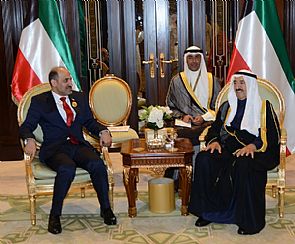 استقبل حضرة صاحب السمو امير البلاد الشيخ صباح الاحمد الجابر الصباح حفظه الله ورعاه بقاعة التحرير في قصر بيان مساء اليوم رئيس الائتلاف الوطني لقوى الثورة والمعارضة السورية احمد العاصي الجربا.