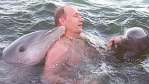 استطاع الرئيس الروسي فلاديمير بوتين الاستيلاء على ميناء المياه الدافئة الذي تعيش فيه دلافين أوكرانيا العسكرية، والمتواجدة قريباً من شبه جزيرة القرم، وذلك بعد ضم الأخيرة إلى روسيا، بحسب ما ورد في صحيفة 'واشنطن تايمز' الأميركية، التي أرفقت الخبر بصورة الرئيس الروسي وهو ينعم بالسباحة مع الدلافين، مع إضافة العنوان الساخر: 'حتى الدلافين فلاديمير؟ روسيا تستحوذ على دلافين أوكرانيا العسكرية'.