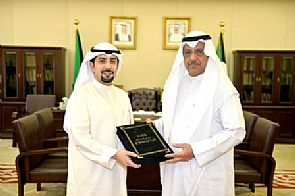 وبدوره قام الخميلي بإهداء نسخة من رسالة الماجستير الحاصل عليها الى نائب رئيس مجلس الأمة مبارك بنيه الخرينج .