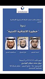 ينظم مكتب شباب الحركة الدستورية الإسلامية 'حدس' ندوة 'خطورة الاتفاقية الامنية'غدا الأحد الساعة 8 مساءا ويتحدث بها: اسامة الشاهين وفلاح الصواغ وعبداللطيف العميري ونخبة من النواب السابقين والنشطاء السياسيين وكتل وقوى سياسية، وذلك اليوم الأحد الموافق : 6/4/2014م الساعة 8 مساءاً بديوان النائب السابق فلاح الصواغ ـ الفنطاس ـ ق2 ـ ش12 ـ م15.