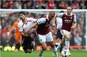 بدأ ويستهام المباراة مهاجما لكن ليفربول سرعان ما دخل في الأجواء وكاد أن يتقدم مبكرا من ضربة حرة سددها سواريز لكن الكرة مرت فوق العارضة مباشرة ، ورد ويستهام بهجمة خطيرة بعد أقل من دقيقتين لكن مارتن سكرتل قطع عرضية في غاية الخطورة قبل أن تصل إلى آندي كارول.