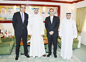 كما التقى المحافظ مدير عام فندق المنشر بيير زيون ومساعده ربيع الأطرش ومدير العلاقات العامة حسن العازمي ، حيث قدموا التهاني للخالد بمباشرة مهامه في محافظة الأحمدي معربين عن تطلعهم ان تشهد المحافظة عموماً والقطاع السياحي والترويحي فيها على وجه التحديد علي يديه المزيد من التطور بما يعزز الطابع الحضاري ويدعم مساهمة هذا القطاع الحيوي في الإقتصاد الوطني ، من جانبه شكر الخالد مهنئيه مؤكداً الحرص علي دعم البنية التحتية السياحية والخدمية في المحافظة ، منوهاً بما يمكن أن يسهم به قطاع الفنادق في استكمال الصورة المضيئة التي يتطلع الجميع الى رسمها لمحافظة الأحمدي تحديداً ودولة الكويت اجمالاً ، متمنياً لفندق المنشر ولمختلف الفنادق والمنشآت السياحية والترويحية العاملة في النطاق الإداري للمحافظة المزيد من التطور والتعزيز لدورها الإقتصادي والحضاري والمجتمعي .